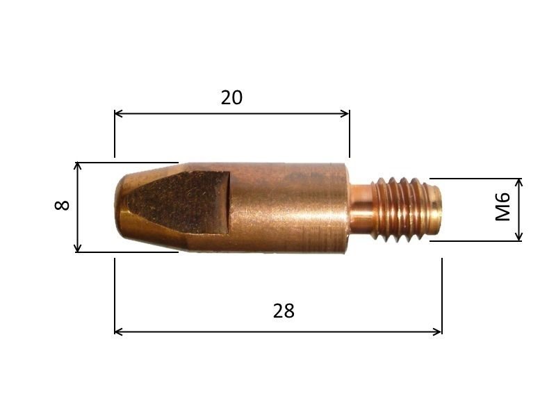 Proudová špička B2505 E-CuCrZr se závitem M6 x 28, pro drát 0,8 mm, balení 25 ks
