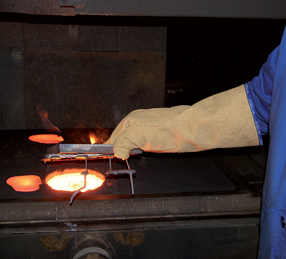 Přeprava horkých odlitků, práce ve sklářském průmyslu, pece atd.