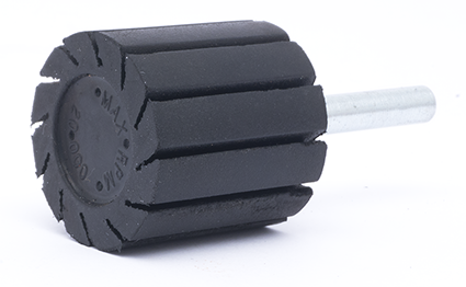 Gumový unašeč určený pro brusné prstence. Má prořezané drážky a stopku o průměru 6 mm.